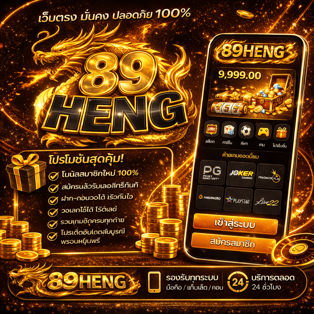 89HENG — หน้าเว็บไม่ซับซ้อน ใช้งานคล่อง เหมาะกับคนที่อยากเข้าเกมได้ไว